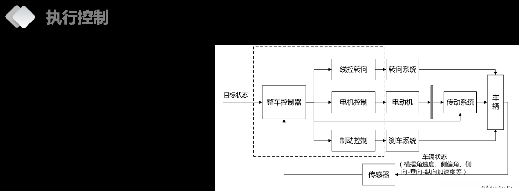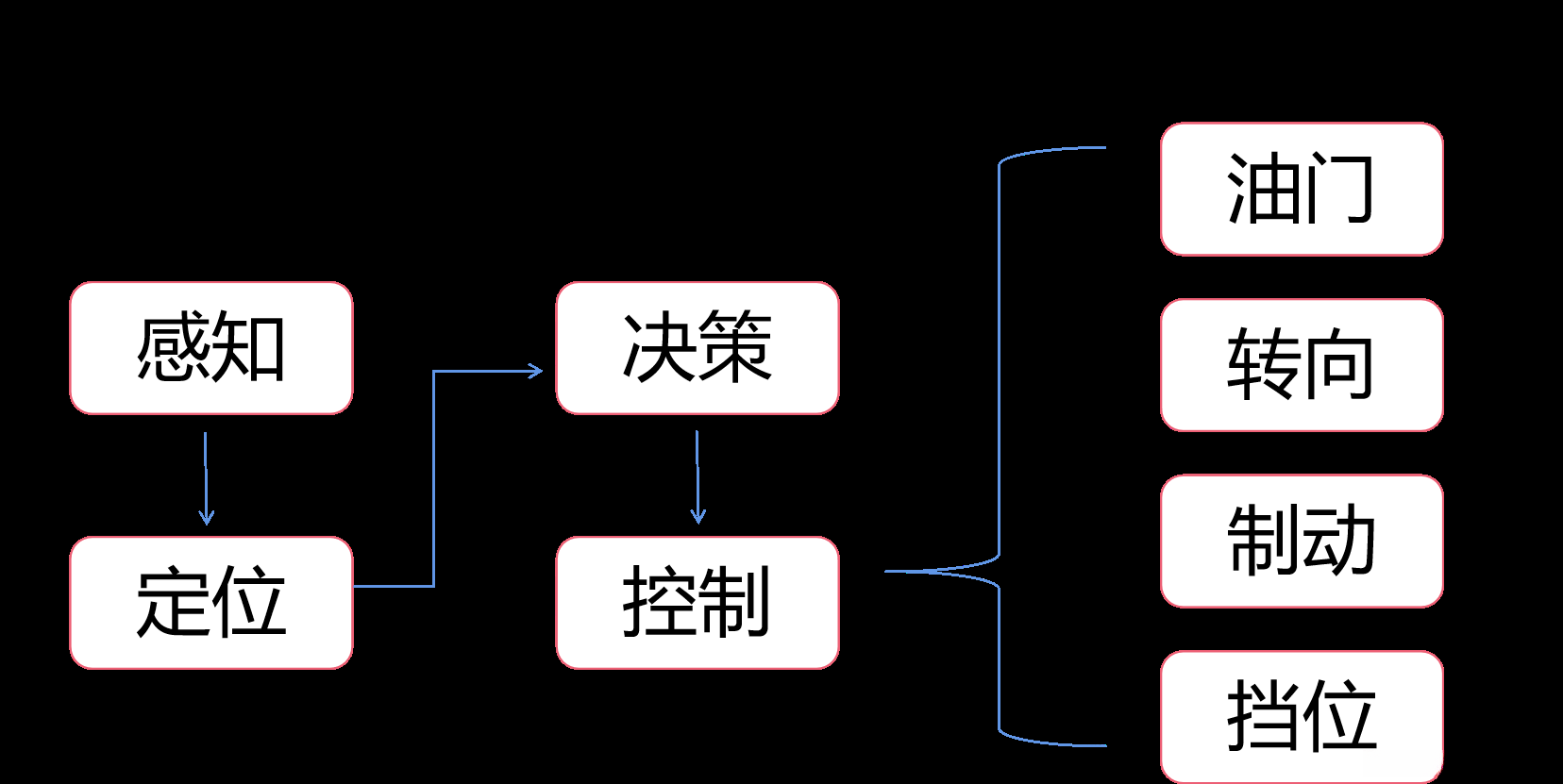 自动驾驶系统利用车载传感系统结合获取的道路、车辆位置以及障碍物数据进行采集分析,并通过调节方向盘和加速/减速装置来控制车辆的转向与速度变化。最终目标是确保车辆能够安全平稳地运行并准确抵达目标位置。