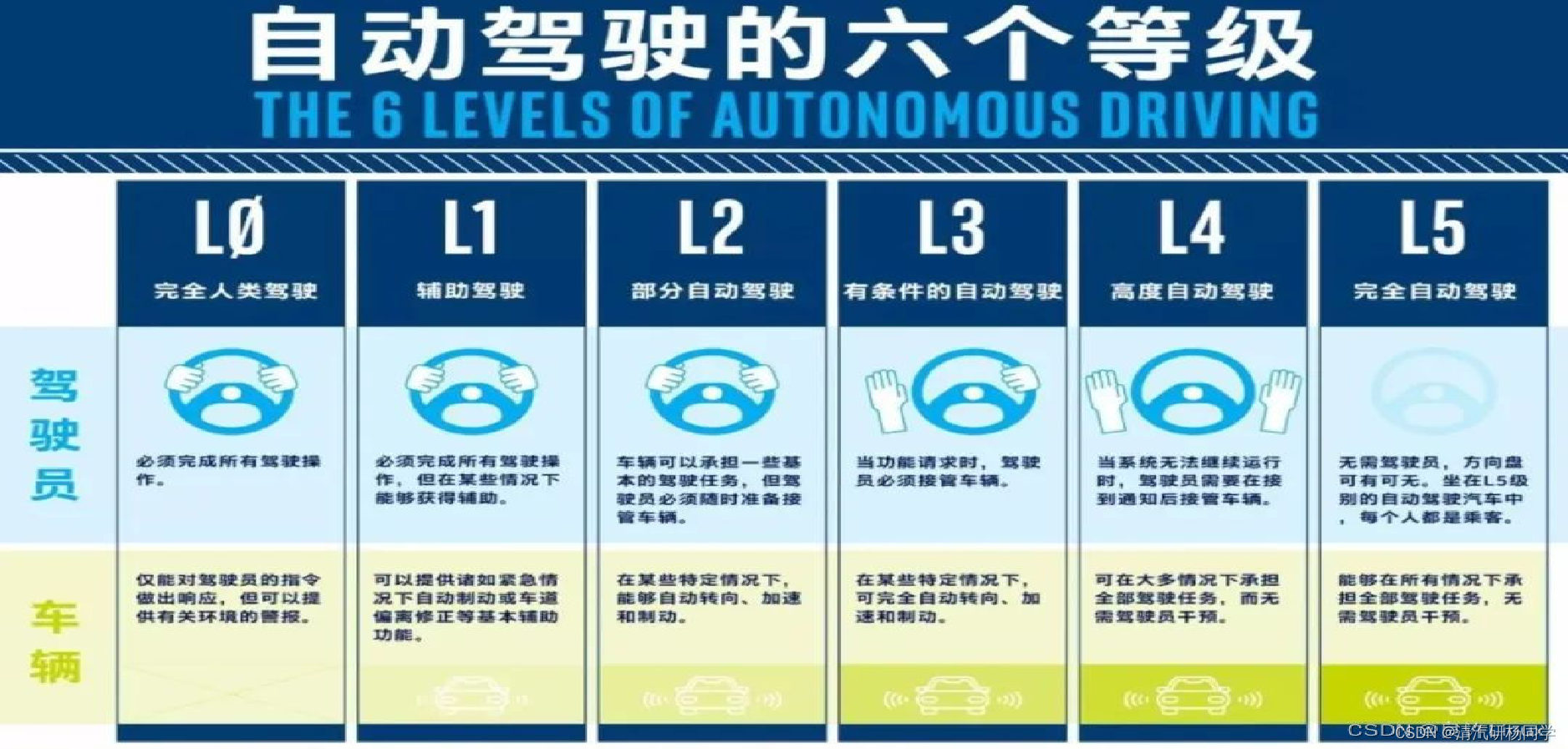 简单来说就是:原本是人类驾驶的任务如今由机器可以完全或部分取代执行功能中的驾驶任务