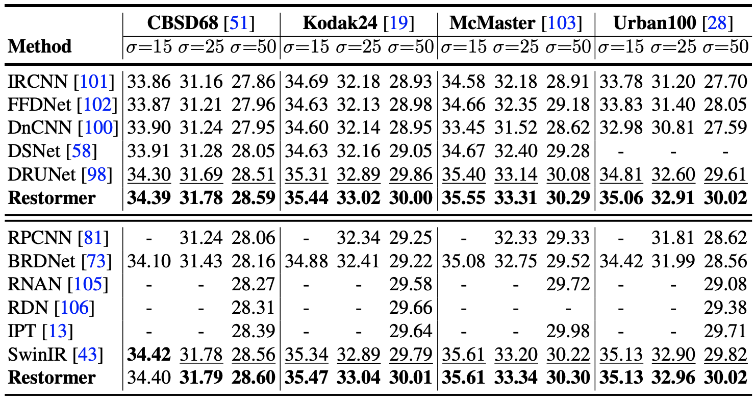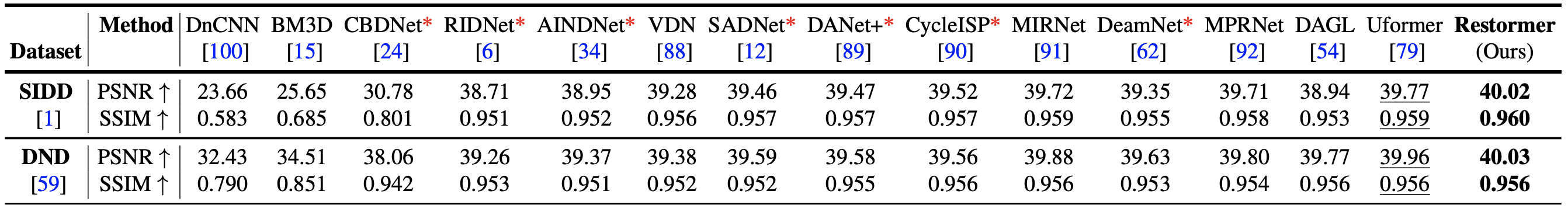 paper:[2111.09881] Restormer: Efficient Transformer for High-Resolution Image Restoration (arxiv.org)