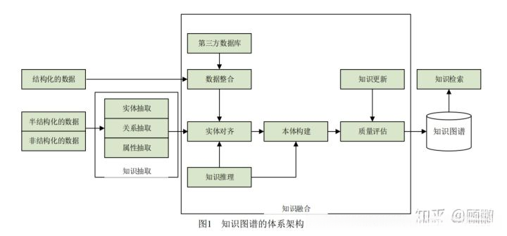 然而目前普遍采用的是基于开放链接数据集提取相关实体并形成初步知识架构的自底向上构建模式。这一模式的本质在于通过计算置信度筛选出高置信度的实体进行整合录入至知识库随后并进一步建立各实体间的关联关系。