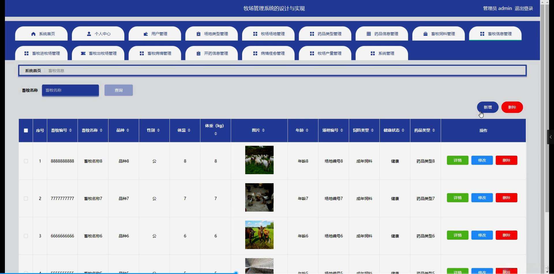 随着信息技术的快速发展,在现代畜牧业中, 传统的牧场管理模式已经无法满足现代化、大规模化生产的现实需求。信息化与智能化水平的提升已成为提升畜牧业生产效率、降低经营成本的关键手段之一。一个功能完善的牧场管理系统能够实现对牧场资源的有效管理, 包括对动物健康状态的实时监测、饲料供应系统的优化配置、生产计划的科学制定以及产品全程追溯体系的构建。在系统架构方面, 我们将采用HTML+CSS作为前端开发语言, 使用JavaScript+Vue框架构建动态交互界面; 后端则采用Node.js+Express技术 stack进行服务构建, 并结合MySQL 5.7数据库进行数据存储与应用支持, 最终形成一套兼具现代化技术特征与优质用户体验的完整牧场管理系统解决方案。该系统不仅能够实现对畜牧业生产经营活动的数据实时监控与分析, 还能通过智能算法优化管理流程, 有效降低人力投入成本, 确保畜牧业生产的高效运行与可持续发展