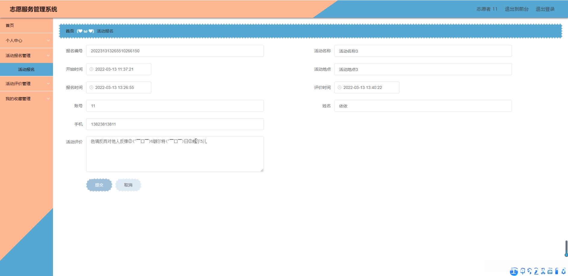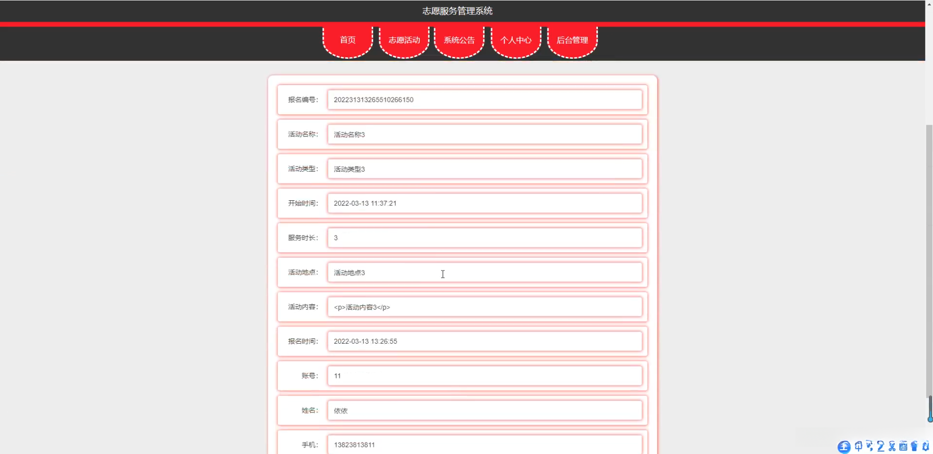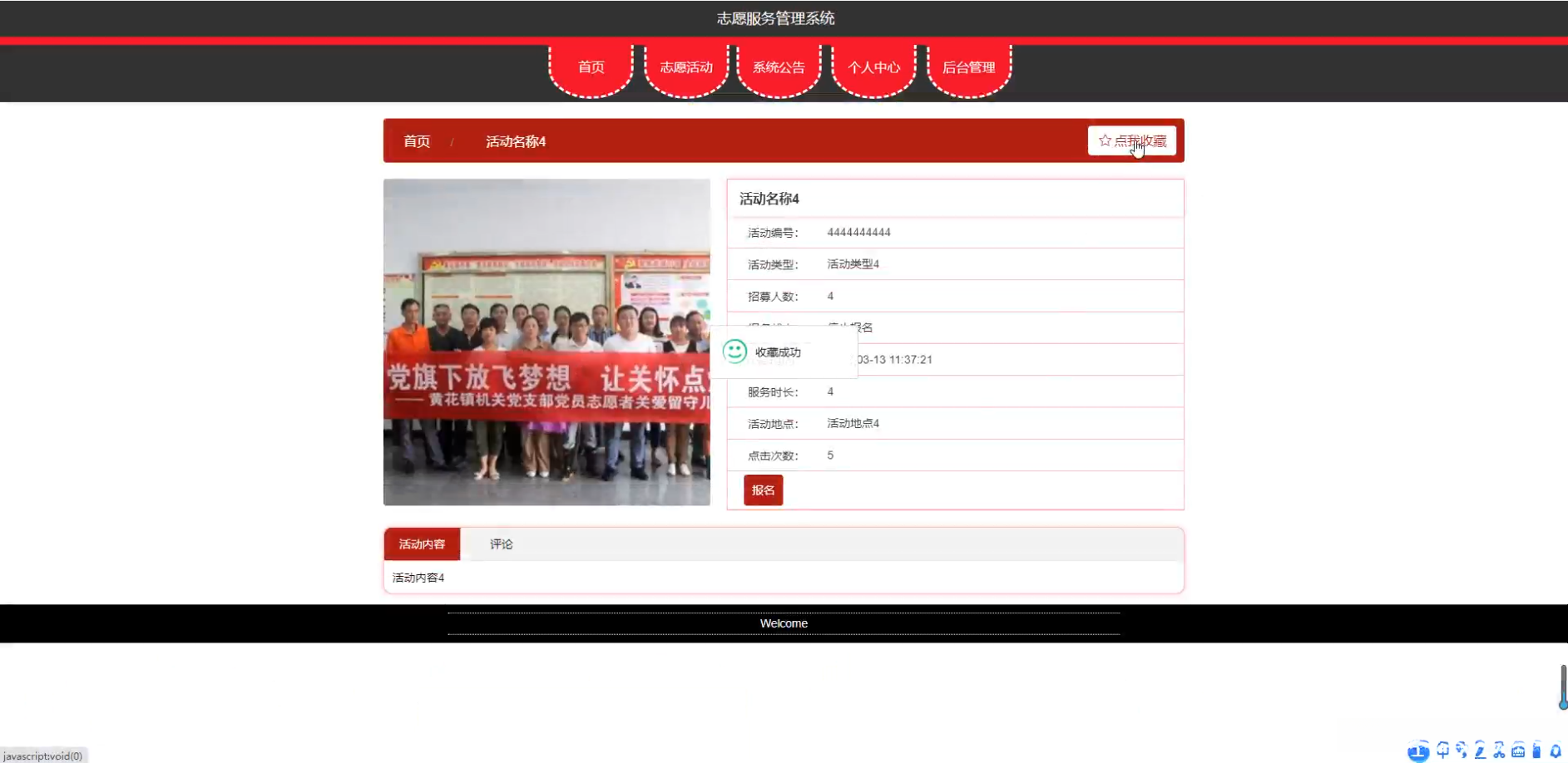 - 功能开发:开发志愿者信息管理系统;完成活动信息发布及招募报名;实现志愿服务时长记录;构建培训资源管理系统等核心模块。