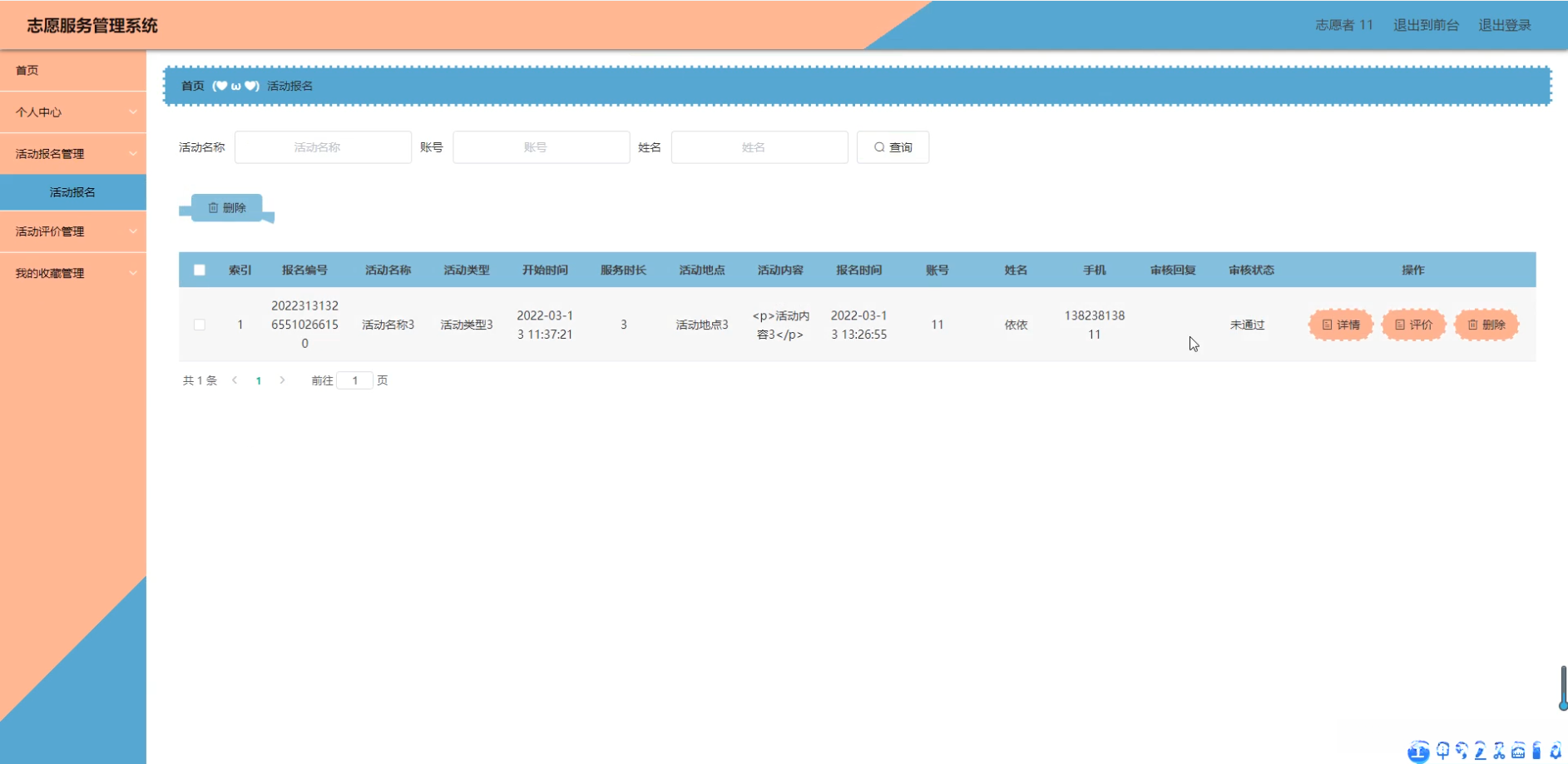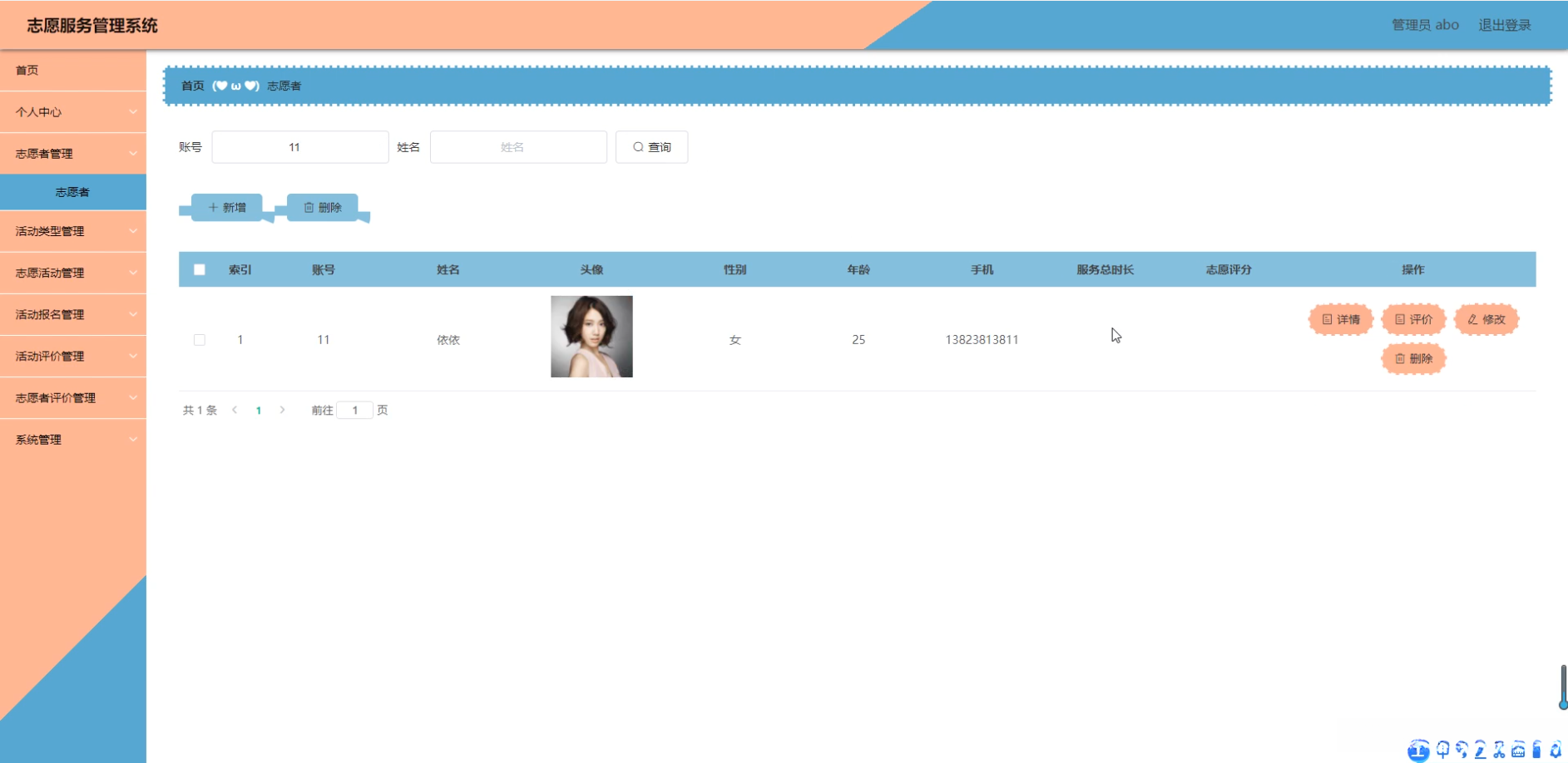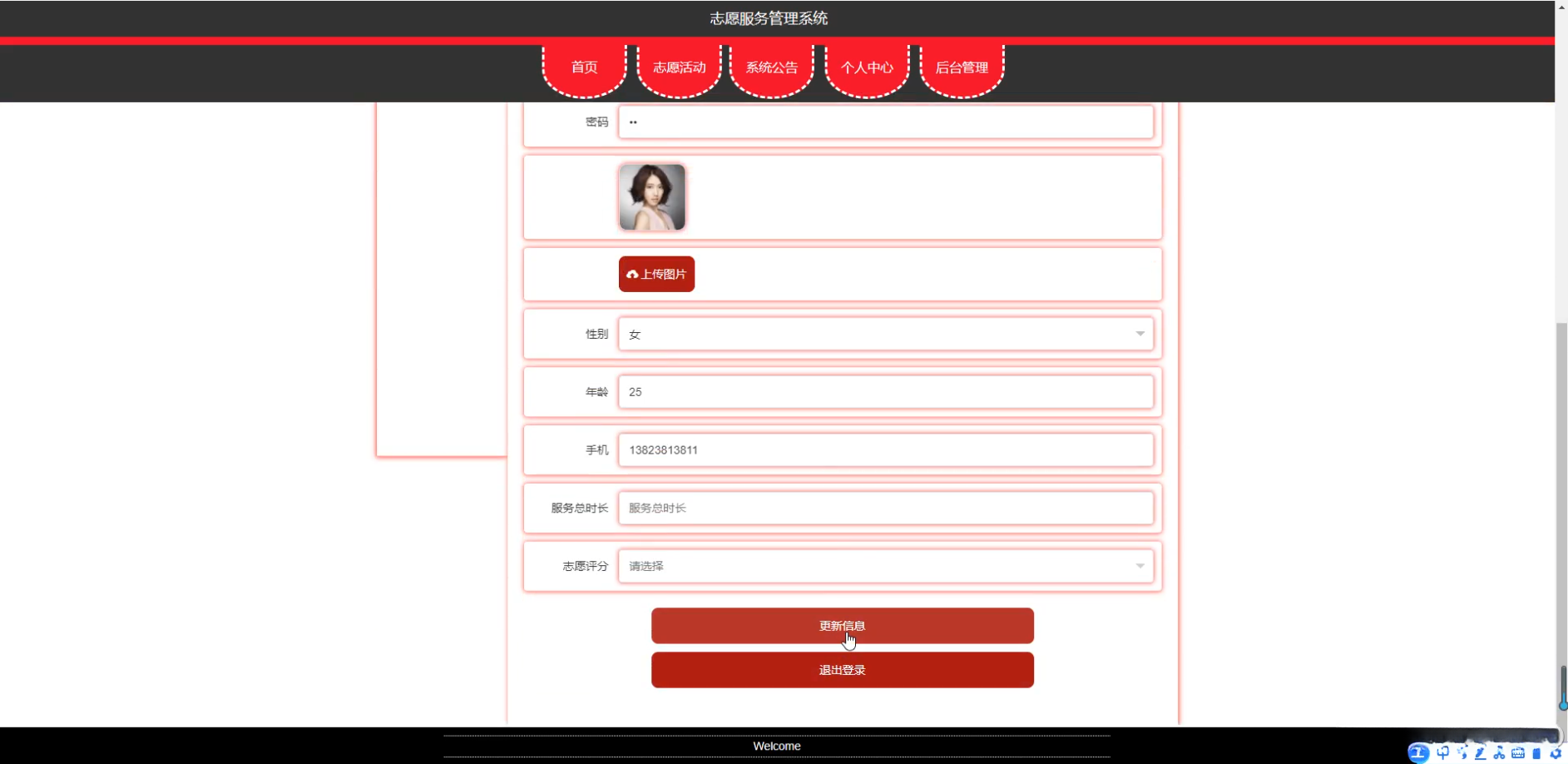 - 功能开发:开发志愿者信息管理系统;完成活动信息发布及招募报名;实现志愿服务时长记录;构建培训资源管理系统等核心模块。