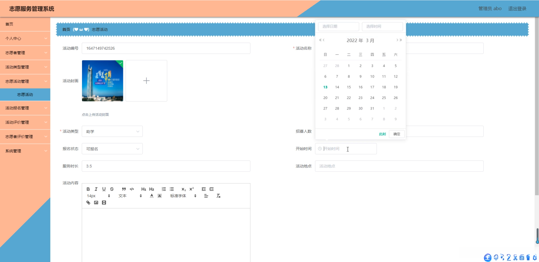 SpringBoot志愿服务管理系统40t83(程序+源码+数据库+调试部署+开发环境)