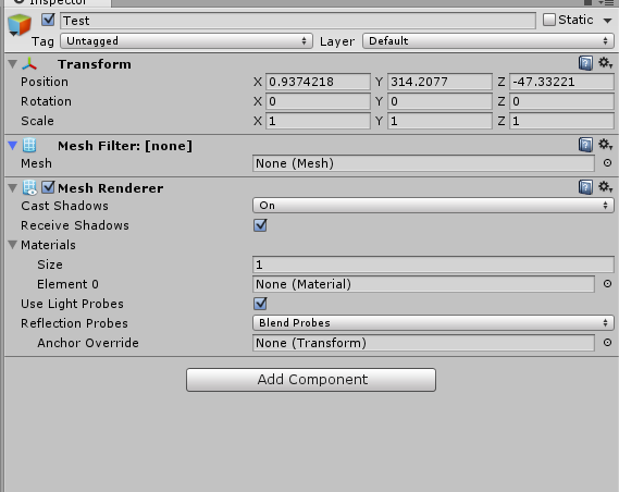 然后为这个物体增加 meshrender 和 meshfilter 两个组件