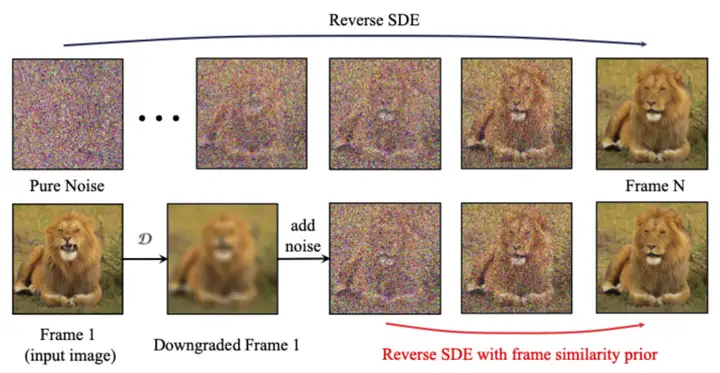 假设所有帧具有类似的结构特征,在经过适当程度的高斯噪声添加后变得难以辨认。因此可将经高斯噪声处理后的输入图像视为后续帧的基础前提。为了消除高频信息可能造成的误导效应, 研究者采用了高斯模糊算子(https://zhida.zhihu.com/search?q=模糊算子&zhida_source=entity&is_preview=1 "模糊算子")以及随机掩码混合的技术