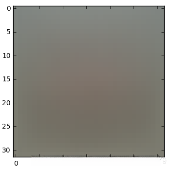 plt.imshow(mean_image.reshape((32,32,3)).astype('uint8')) # visualize the mean image