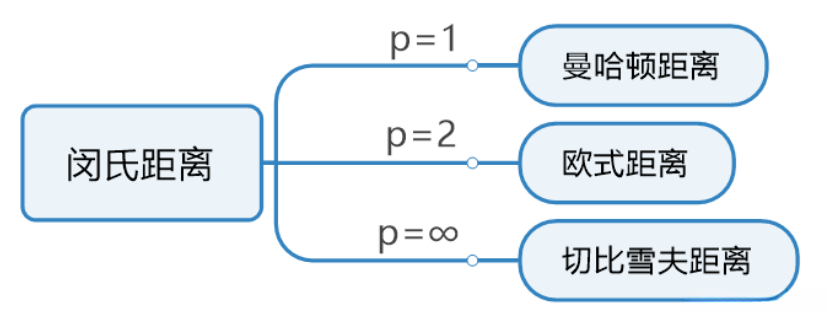 个距离公式(曼哈顿距离、欧式距离、切比雪夫距离)总结成为的一个公式。