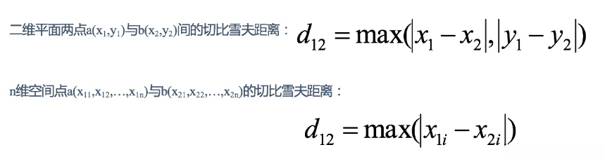 其各坐标数值差绝对值的最大值。以数学的观点来看,切比雪夫距离是由一致范数(uniform