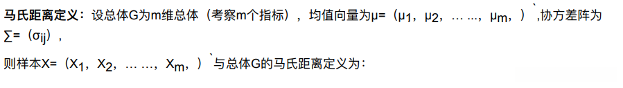 #马氏距离要求样本数要大于维数,否则无法求协方差矩阵