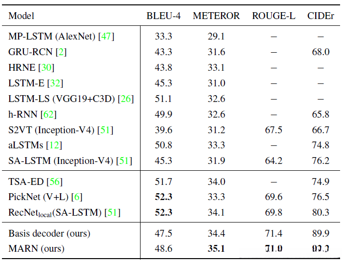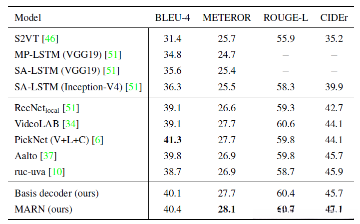 下面是模型MARN在MSR-VTT数据集上的实验结果。