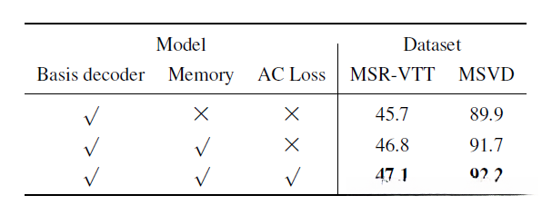 作者在MSVD和MSR-VTT两个数据集做了实验。
