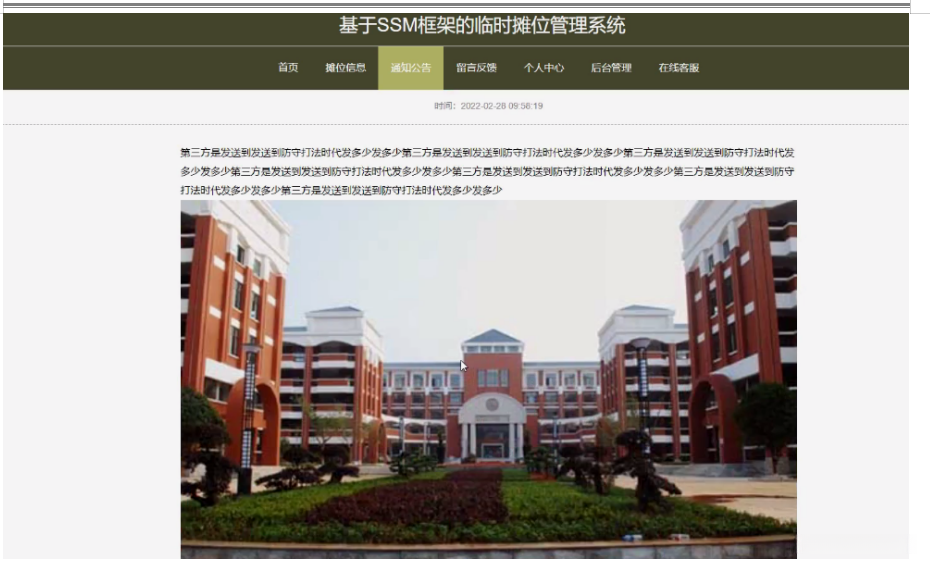 点击"通知公告"页面, 用户即可查看包含公告标题、发布时间以及发布内容等信息的具体页面, 如图5-8所示