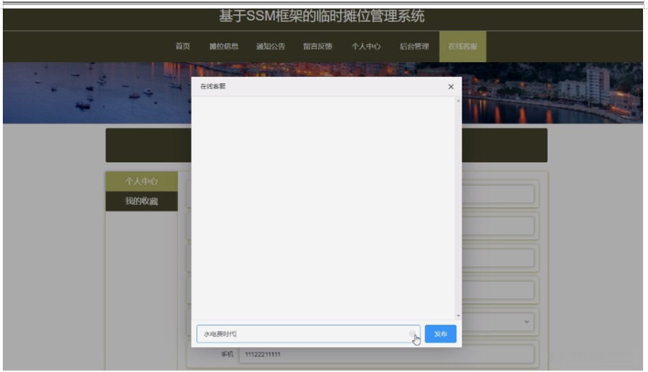 通过点击在线客服功能, 用户可以提交咨询内容至后台, 管理员可在后台查看并回复相关事务. 如图5-6所示为在线客服操作界面.