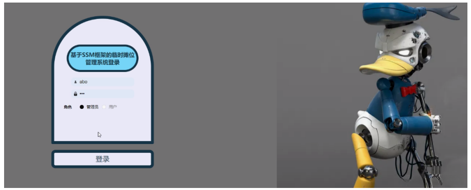 系统管理员需执行登录操作,在进入系统前,在登录页面处输入用户名与密码,在指定相应的角色信息后完成所有设置并点击登录按钮以完成整个 login 流程(如图 5-9 所示)。