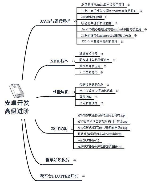 大多数技术人喜欢用思维脑图来构建自己的知识体系,一目了然。这里给大家分享一份大厂主流的Android架构师技术体系,可以用来搭建自己的知识框架,或者查漏补缺;