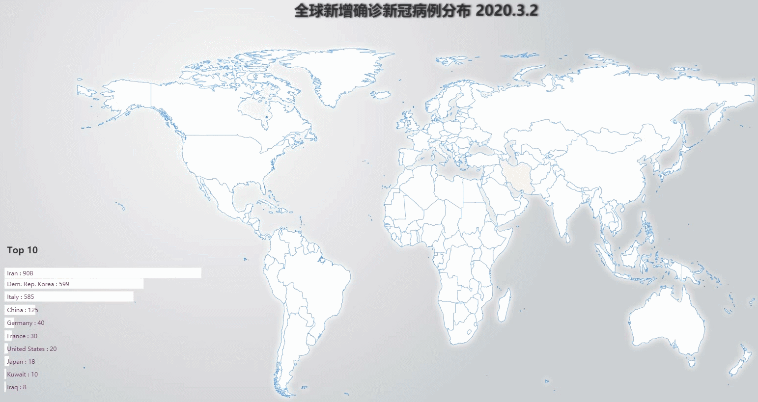 开发一个基于echarts 的动态可视化系统用于展示全球新冠肺炎新增病例数据,并采用echarts作为底层技术实现;该平台的数据来源于Hopkins University Hospital。