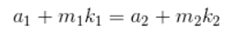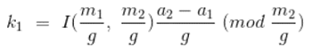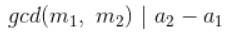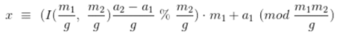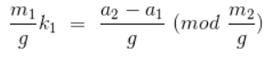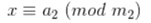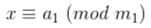 将上式带回到最初的x = a1 + m1k1中,消去k1可得到: