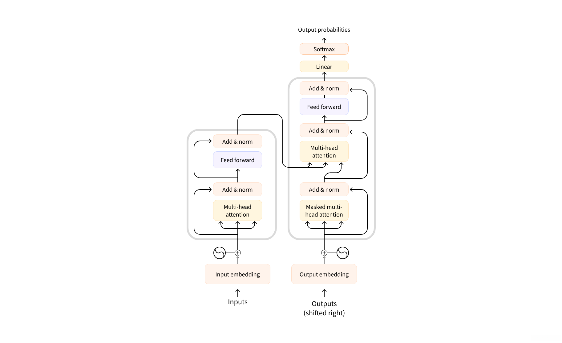 原始的Transformer架构看起来像这样,左边是编码器,右边是解码器: