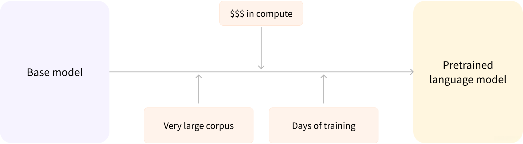 反过来说,在预训练完成后实施微调。要启动微调过程,则需先获取经过预先训练的语言模型。接着利用与特定任务相关的专用数据集继续补充学习。那么为什么不直接从零开始针对最终目标构建模型呢?原因主要包括以下几个方面: