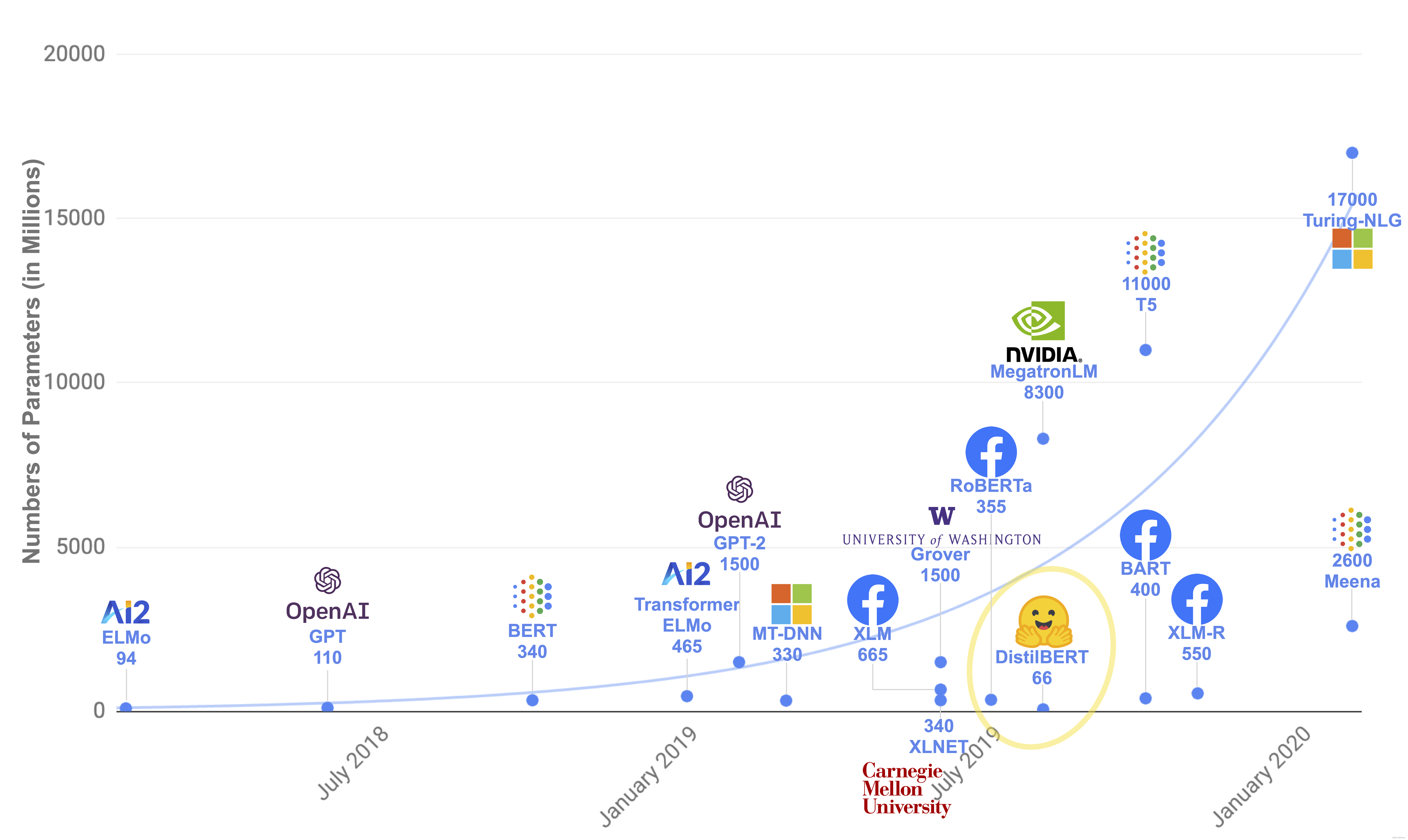 2019年10月:DistilBERT,BERT的精简版本,速度提升60%,内存减小40%,性能仍保留BERT的97%。