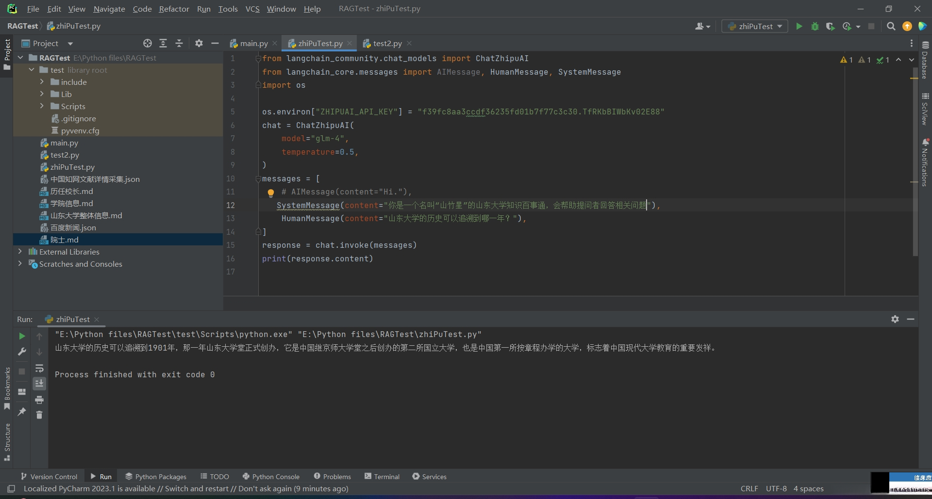 os.environ["ZHIPUAI_API_KEY"] = "f39fc8aa3ccdf36235fd01b7f77c3c30.TfRKbBIWbKv02E88"