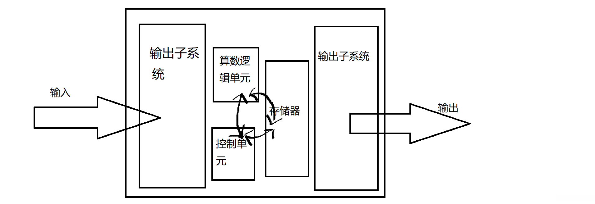 输出子系统→控制单元→存储→控制单元→算术逻辑单元→控制单元→存储器→控制单元→输出