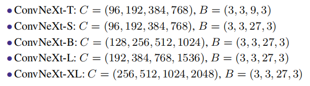 - 基于前述研究获得的结论,作者提出了一组纯ConvNet模型,并将其命名为ConvNeXt。