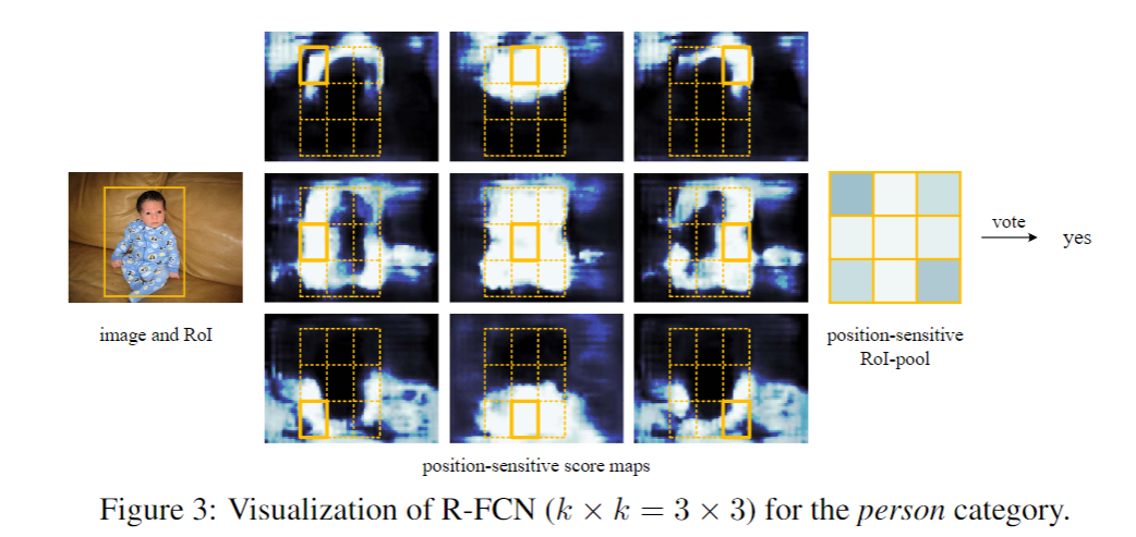 Position-sensitive score maps & Position-sensitive RoI pooling。