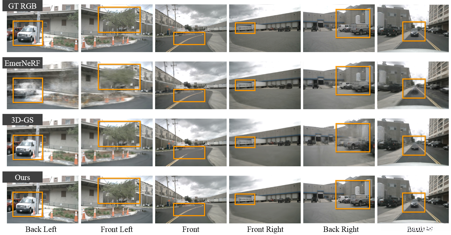 We present comprehensive analysis results in nuScenes by comparing with our leading competitors, EmerNeRF and 3DGS, on real-time reconstruction tasks.