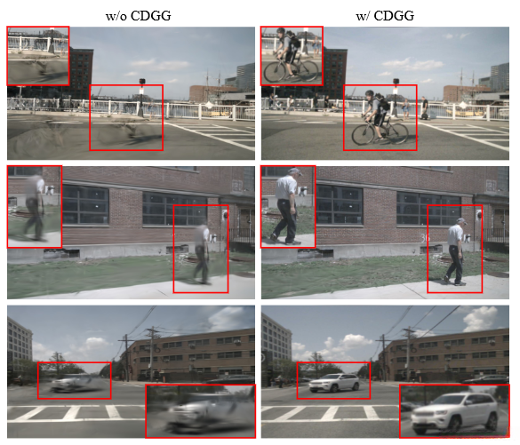 The CDGG framework achieves the reconstruction of dynamic objects within driving scenarios at any desired speed, including vehicles, bicycles, and pedestrians.