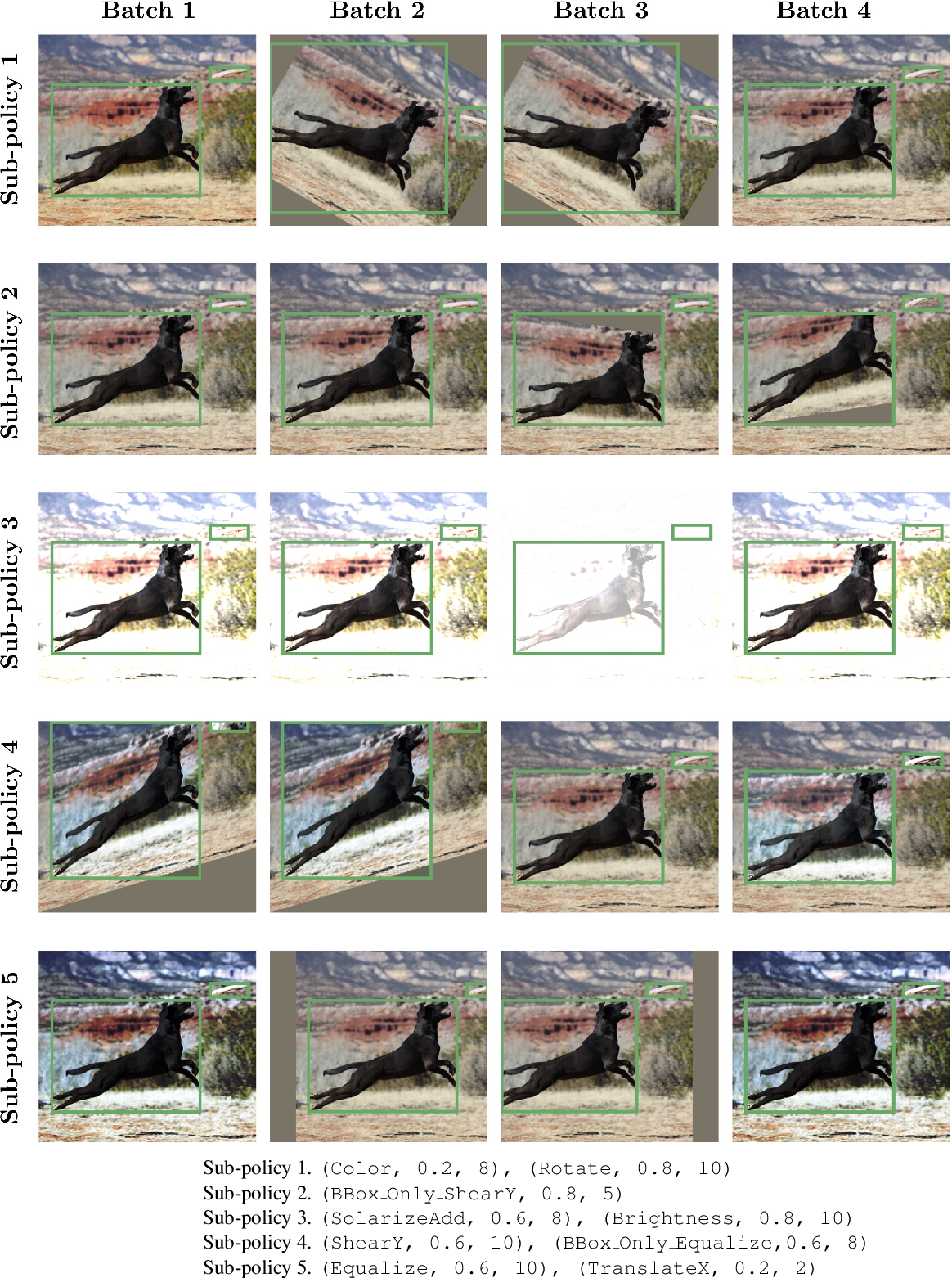 这篇文章可以看做是之前 AutoAugment 的扩展,在检测任务上搜索一个好的数据增强方案。作者在 AmoebaNet + NAS-FPN 上用搜出来的数据增强方法能达到 50.7 的 COCO validation mAP。