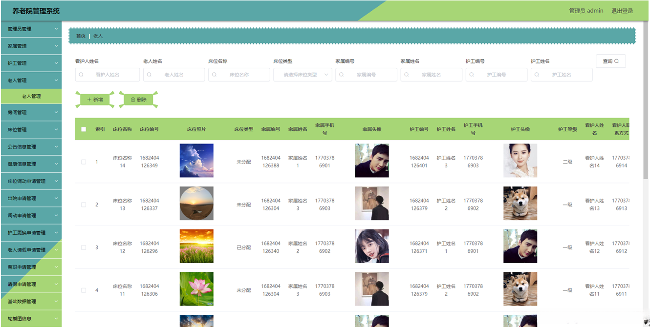 关键词: 养老院管理系统;床位,老人SpringBoot数据库;Java语言