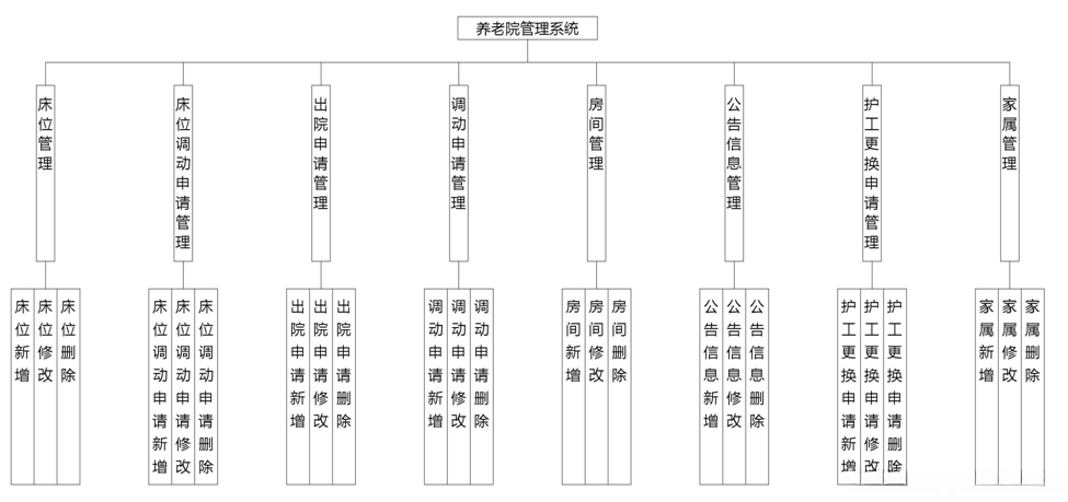 基于Java语言开发的养老院管理系统中包含多个核心模块:通过MySQL数据库设计数据存储结构用于存储系统的运行相关信息,并通过SpringBoot框架构建系统的后台架构布局实现集中化的数据管理和信息处理。该系统能够显示相关信息并提供相应服务功能实现床位管理和床位调动处理等功能模块包括出院处理流程转入调转流程配置名词库以及房间配置设置等核心业务逻辑同时具备公告发布模块支持用户权限操作等功能实现统一化的资源调度与成本控制目标是降低运营成本最大化资源利用率提升服务效率