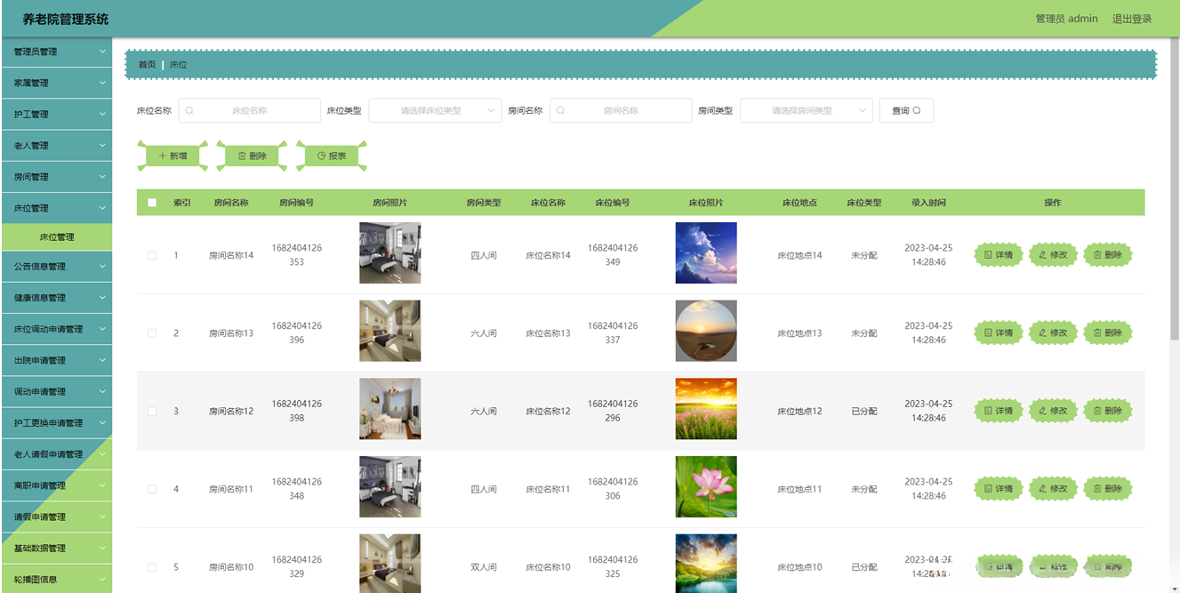 该系统采用模块化设计实现管理员功能结构,并提供全面权限操作功能。支持管理员权限操作的功能涵盖:养老院管理系统信息的管理和各类事务处理模块(床位、培训、老人及薪资等项目)。可执行公告发布。