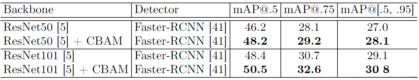 最后本文针对物体检测模型Faster-CNN进行了实验验证了加入CBAM模块的特征提取网络能够获取更好地检测性能。