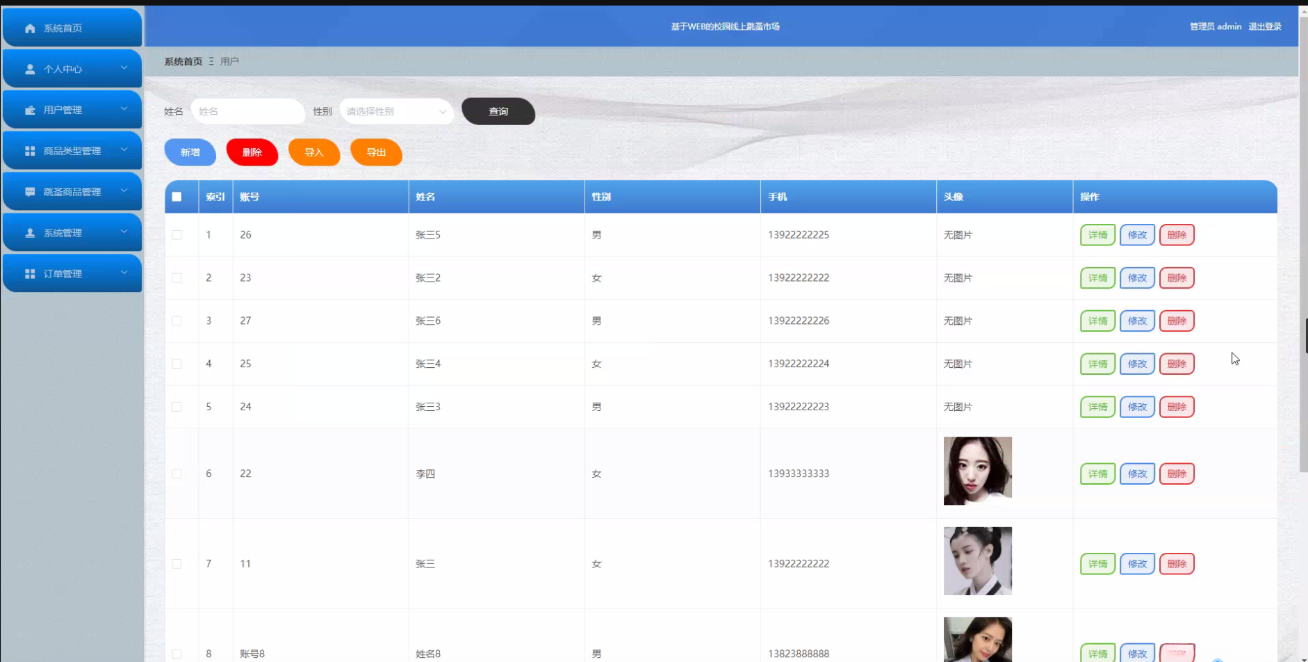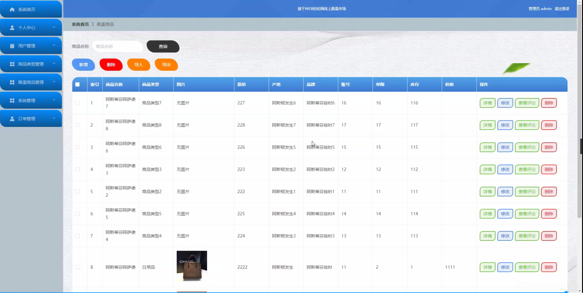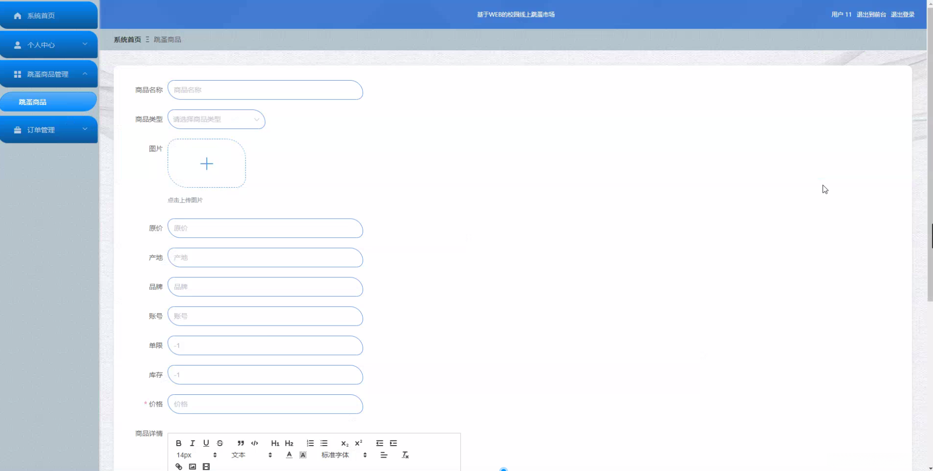 目的: 本项目旨在设计并实现一个基于Web的校园线上跳蚤市场系统,通过该系统,可以实现对用户、商品类型、跳蚤商品等功能的统一管理。系统将服务于校园内的学生群体,为他们提供一个方便、快捷、可靠的线上交易平台。
