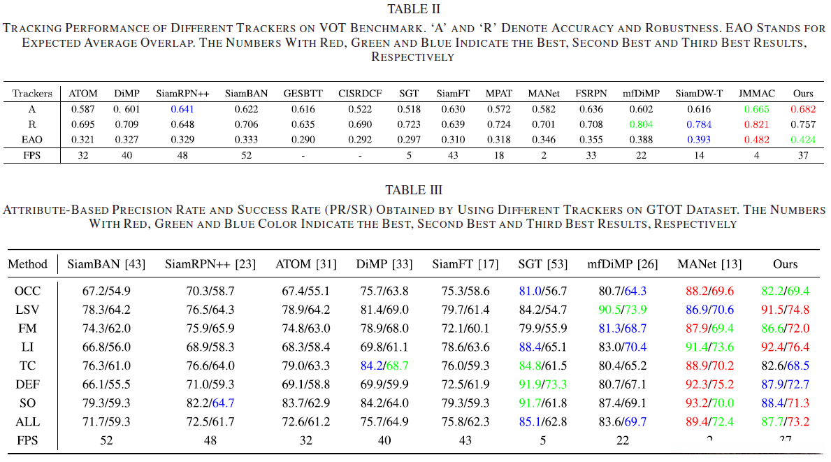 - DSiamMFT利用动态孪生网络构建了一个具有多层次混合结构的RGB-T跟踪器;