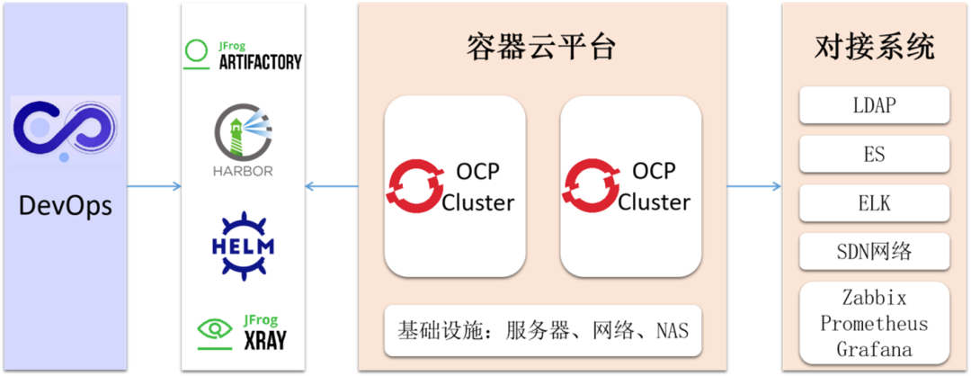 目前集团内部存在DevOps平台和容器云PaaS平台。