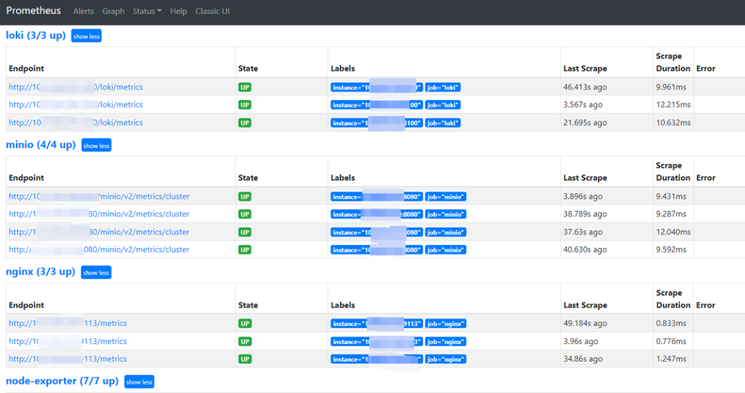 LB 采用的是外部部署方式,并主要负责终止 SSL 连接。由于 Nginx 受外部控制,在配置时能够自动分配至多个服务。Nginx 不仅与 Prometheus 和 Thanos Querier 实例直接相连,并且还提供了相应的 WebUI 界面供管理使用。