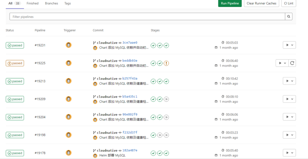 通过GitLab CI流水线进行容器化部署如下图所示: