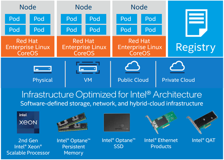 英特尔也在与红帽共同致力于打造一体化云原生解决方案,在当前云计算环境下广泛采用的多云架构基础之上,双方已就基于该架构的参考实现框架达成一致意见。