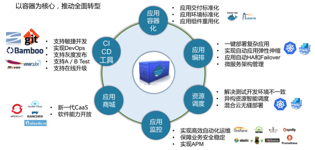 lDevOps能力包含持续集成/持续交付(CI/CD)、微服务治理能力以及全面的应用管理功能。这些核心能力不仅能够快速构建、部署以及运维容器架构,并且能够通过敏捷开发理念和全生命周期管理策略实现应用的高效运营与持续优化。