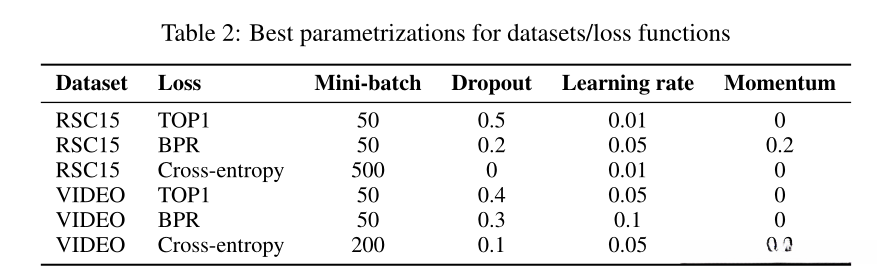 论文采用对会话进行建模,提出了一种基于RNN的方法(GRU4REC模型),考虑到推荐系统的实际任务,对经典的RNN进行了改进,使其更适用于这个特定问题。设计了适配于该推荐任务的ranking loss function(BPR和TOP1), 两个数据集( RecSys Challenge 2015和 Youtube 的 OTT )的实验结果表明,与广泛使用的方法相比有显着改进。