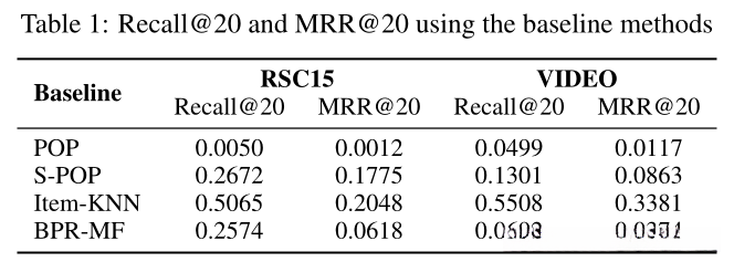 - Item-KNN:推荐与实际item相似的item,相似度被定义为session向量之间的余弦相似度