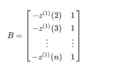 需要确定参数a和b以使微分方程的解与观测数据最为吻合。在函数表达式中其中参数a以及u尚待确定 而变量t以及x^(1) 的值均为已知 因此此类问题通常采用最小二乘法 通过最小化预测值与实际观测值之间的残差平方和来确定最佳拟合参数。