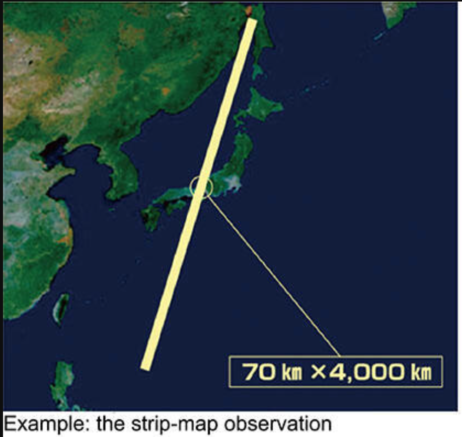 | Stripmap mode (Resolution 3 m, 6 m, 10 m) | 100km-200km |