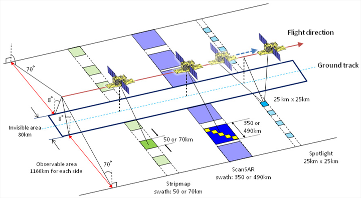 | ScanSAR mode (Resolution 25 m) | 700km |