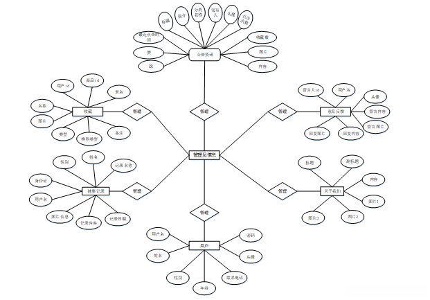 将“公告资讯、收藏、意见反馈、健康记录、用户、关于我们”等作为实体,它们的局部E-R图,如图4-2所示:
