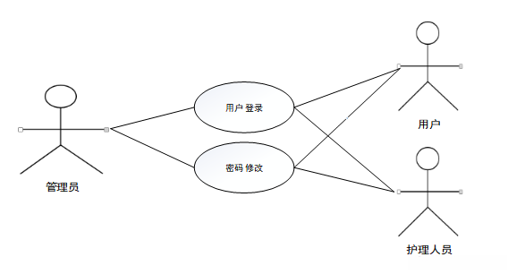 (1)系统的通用功能包括用户登录和密码修改,是三个角色共同需要使用的功能,用例分析如图3-1所示。